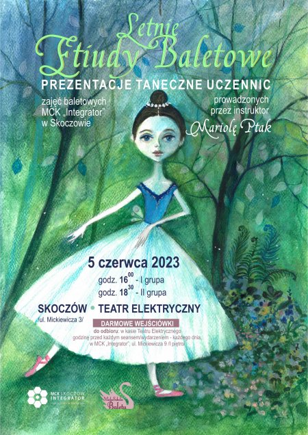 Miejskie Cetrum Kultury "Integrator" zaprasza do Teatru Elektrycznego na prezentacje baletowe w wykonaniu uczennic zajęć baletowych prowadzonych przez Panią Mariolę Ptak w MCK "Integrator" w Skoczowie.