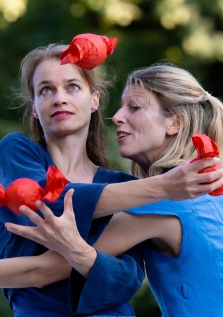 „My heart is on the table”, zwycięzca „Premio Emilio Vassalli” (2022), to współczesny spektakl cyrkowy stworzony i wykonywany przez Laurę Colonnę (Włochy) i Doreen Grossmann (Niemcy), artystki tworzące duet Pigreco Company.