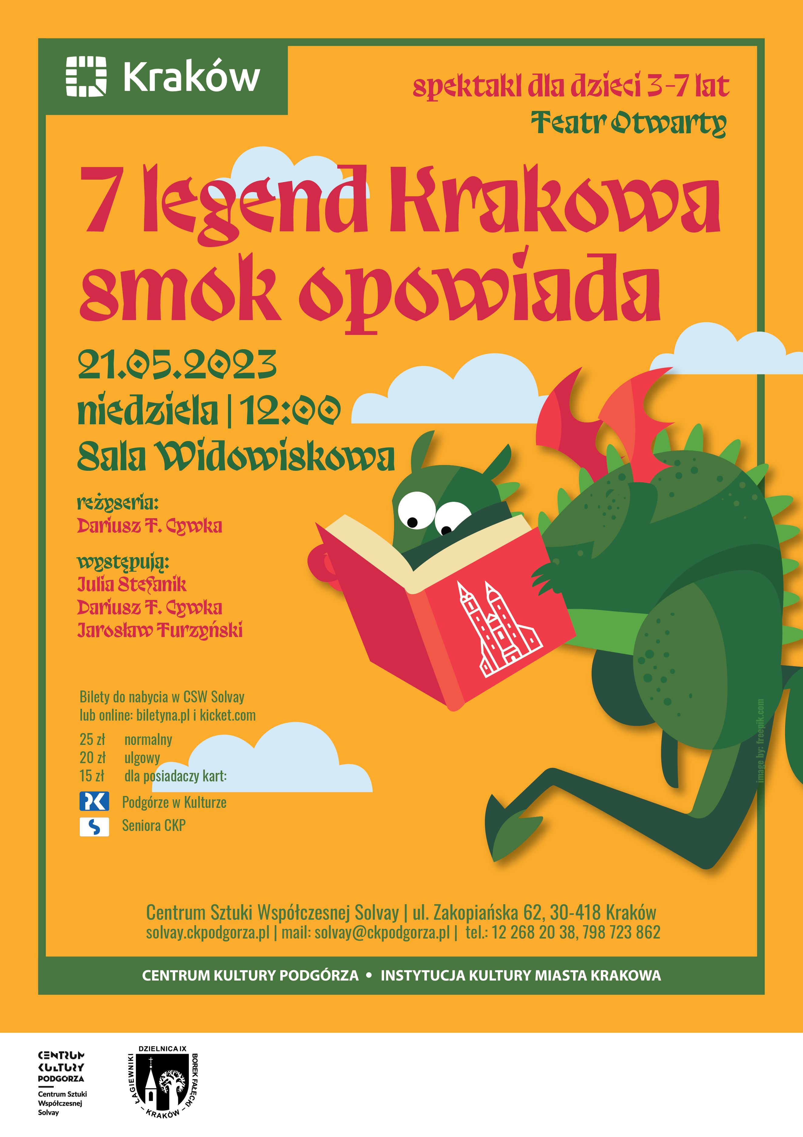21.05.2023/niedziela, godz.12.00 „7 LEGEND KRAKOWA SMOK OPOWIADA” Teatr Otwarty