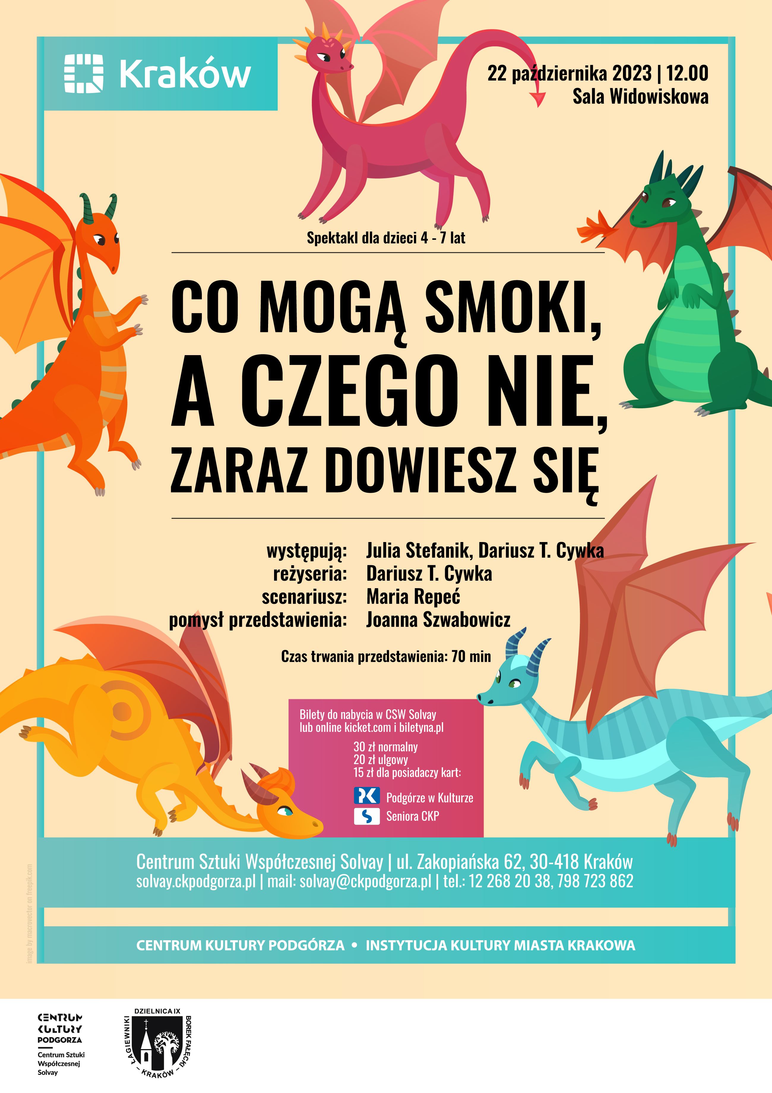 22.10.2023, godz.12.00 Spektakl dla dzieci „CO MOGĄ SMOKI, A CZEGO NIE, ZARAZ DOWIESZ SIĘ” Teatralna Scena Solvay