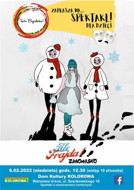 „Ale frajda. Zimowisko” to spektakl przepełniony żartem, humorem i dobrą zabawą. Podczas wydarzenia zostaną przedstawione różne oblicza Pani Śnieżanny, czyli Pani Zimy- te bardziej mroźne, pokryte szronem i białym puchem, a także te bardziej słoneczne lub szare, bez bieli i śniegu.