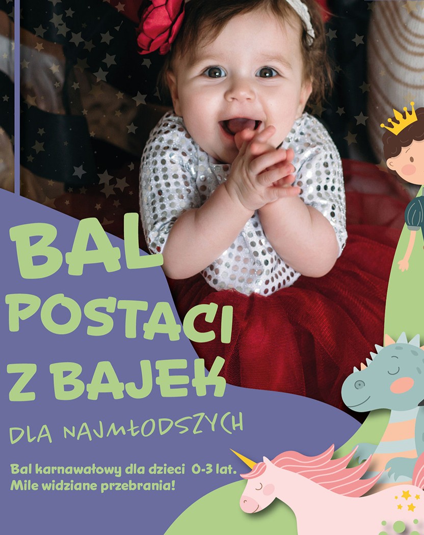Zapraszamy dzieci wraz z rodzicami i opiekunami. Przebieramy się za postaci z bajek! Czekamy na: królewny, księżniczki, rycerzy, elfy, motylki, biedronki, żabki, tygryski, króliczki, strażaków, policjantów oraz… wszystkich bohaterów, których tylko podpowie Wam wyobraźnia!