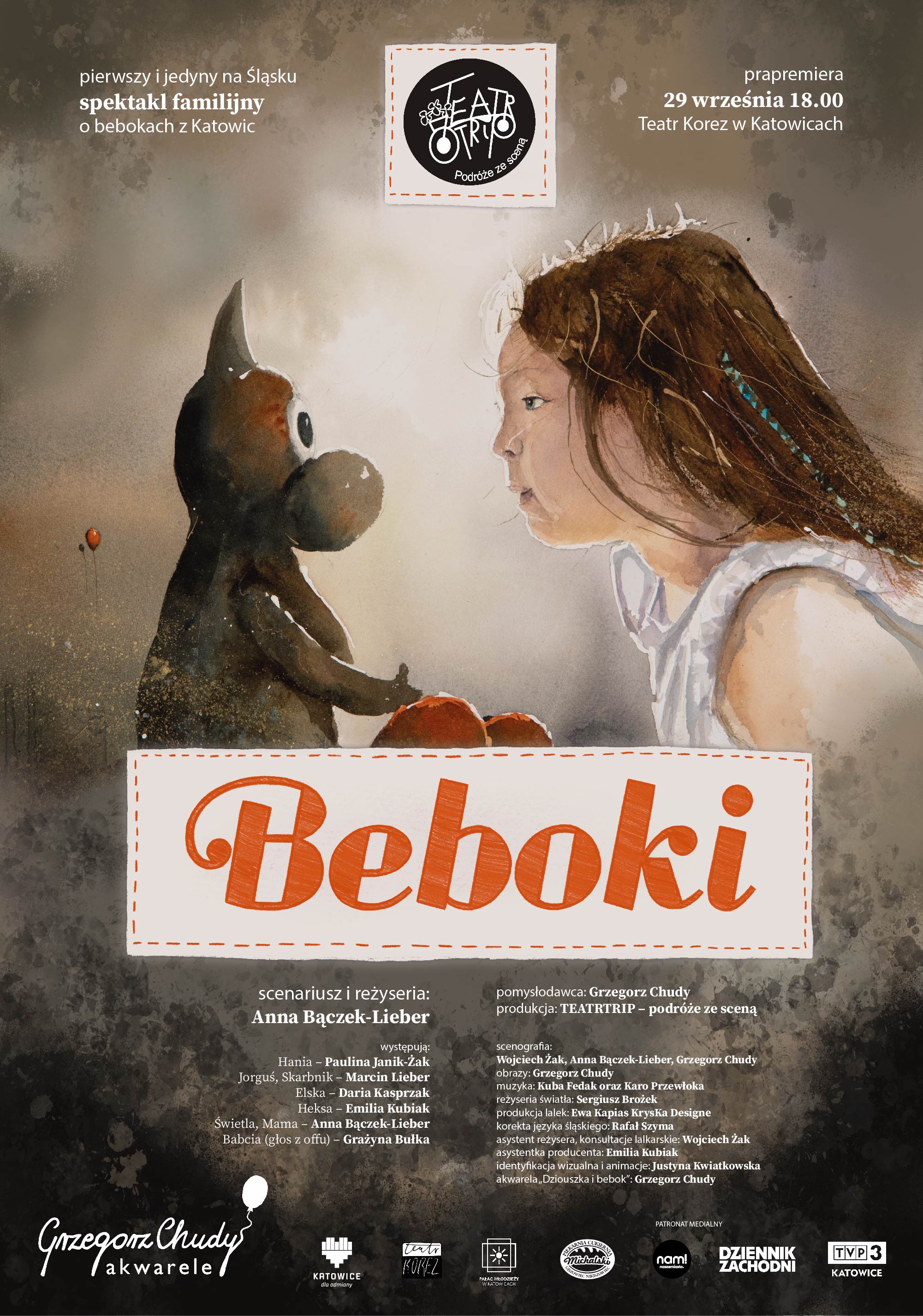 Zapraszamy Was do odbycia niezapomnianej podróży w głąb dziecięcej wyobraźni. Przeżyjecie z nami niezwykłą przygodę w kątach dziecinnego pokoju, ajnfartach starych kamienic oraz czeluściach kopalnianych korytarzy. Będziemy poszukiwać odpowiedzi na wiele nurtujących pytań, nie tylko dotyczących bebokowego życia. Zabierzemy Was w podróż sentymentalną, która stanie się pretekstem do opowiedzenia młodym Widzom o śląskich tradycjach i kulturze.