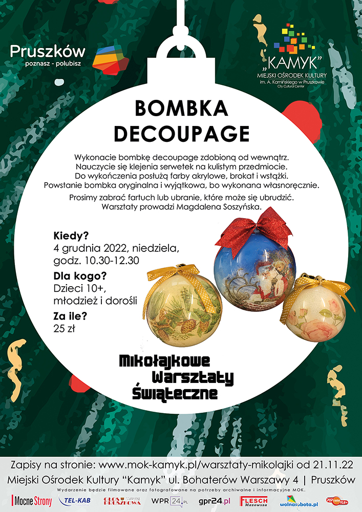 BOMBKA DECOUPAGE – MIKOŁAJKOWE WARSZTATY ŚWIĄTECZNE