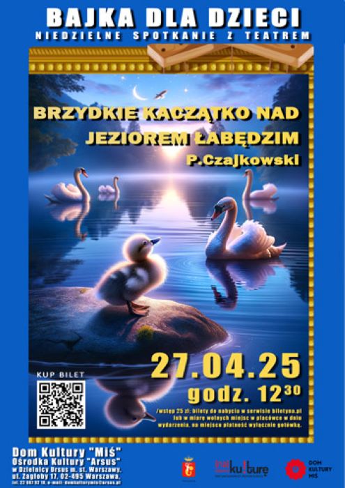Spektakl, który łączy baśń Hansa Christiana Andersena „Brzydkie Kaczątko” z czarującą muzyką Piotra Czajkowskiego z baletu „Jezioro Łabędzie”. W tej poruszającej adaptacji młodzi widzowie śledzą losy Brzydkiego Kaczątka, które wyrusza w podróż, by odkryć siebie, swoje prawdziwe piękno.