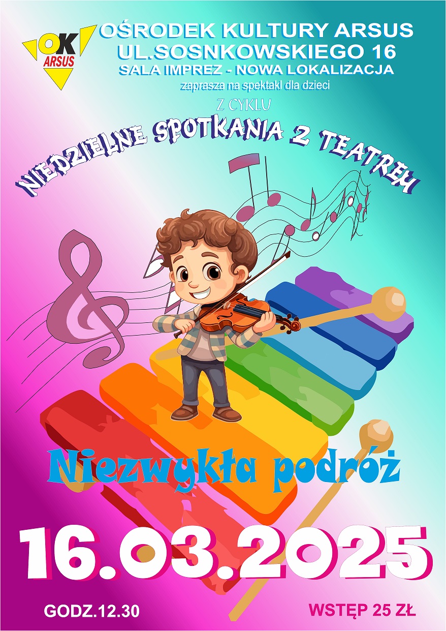 Bohaterami bajki są instrumenty muzyczne , które w czasie podróży mają wiele kłopotów. W przedstawieniu dzieci poznają: obój, ksylofon , akordeon, skrzypce oraz keyboard. Wesoły dyrygent (lalka) zaprasza dzieci do udziału we wspólnym koncercie.