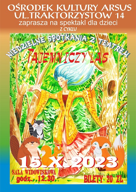 „Tajemniczy las” to historia psotnych stworzeń leśnych, które swoim beztroskim zachowaniem denerwują Czarownicę Ilonę. Czy ich przyjaźń przetrwa moc zaklęcia rzuconego przez Ilonę? Jest to przedstawienie familijne, w którym aktywnie uczestniczą wszyscy widzowie.