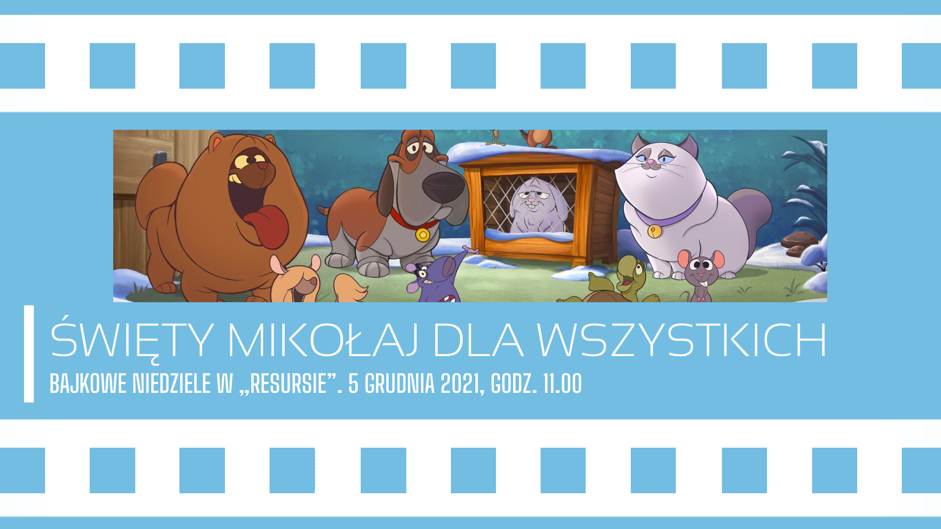 W niedzielę, 5. grudnia o godzinie 11.00 zapraszamy do Resursy, wszystkie dzieci wraz z opiekunami na kolejną „Bajkową niedzielę”. Tym razem dla naszych małych widzów przygotowaliśmy film pt. „Święty Mikołaj dla wszystkich” oraz mini koncert „Fionka Dzieciom”.