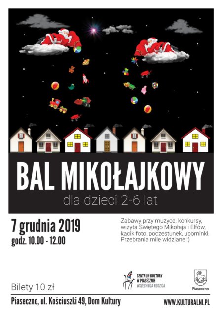 Bal Mikołajkowy: zabawy przy muzyce, konkursy, wizyta Świętego Mikołaja i Elfów, kącik foto, poczęstunek, upominki.