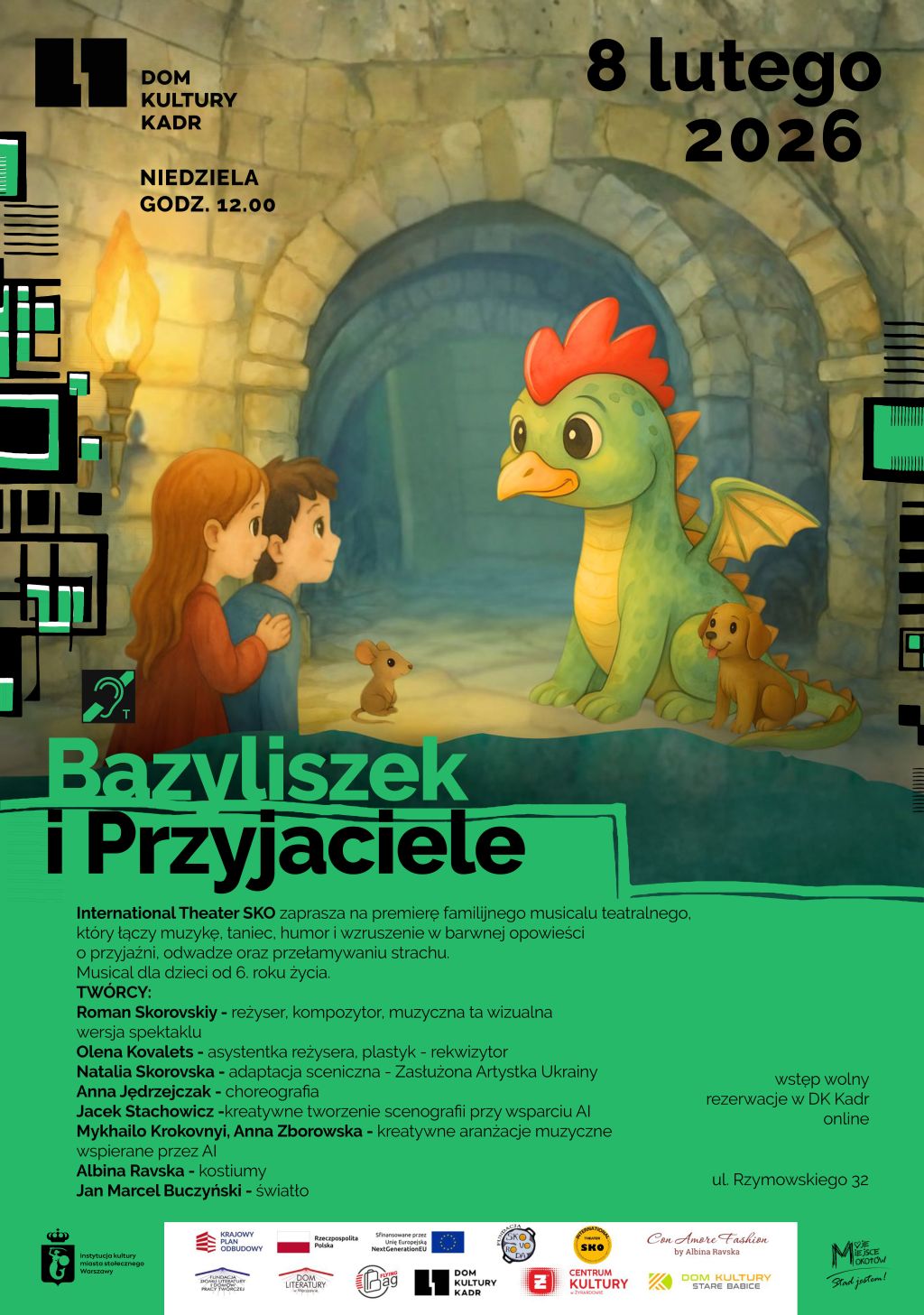 To historia legendarnego Bazyliszka, który zamiast straszyć — zaprzyjaźnia się z dziećmi i mieszkańcami Warszawy, ucząc ich (i siebie samego), że prawdziwa siła tkwi w sercu, a nie w grozie. Spektakl pełen jest piosenek, komicznych postaci, wzruszających momentów i interakcji z publicznością — idealny zarówno dla dzieci, jak i dorosłych.