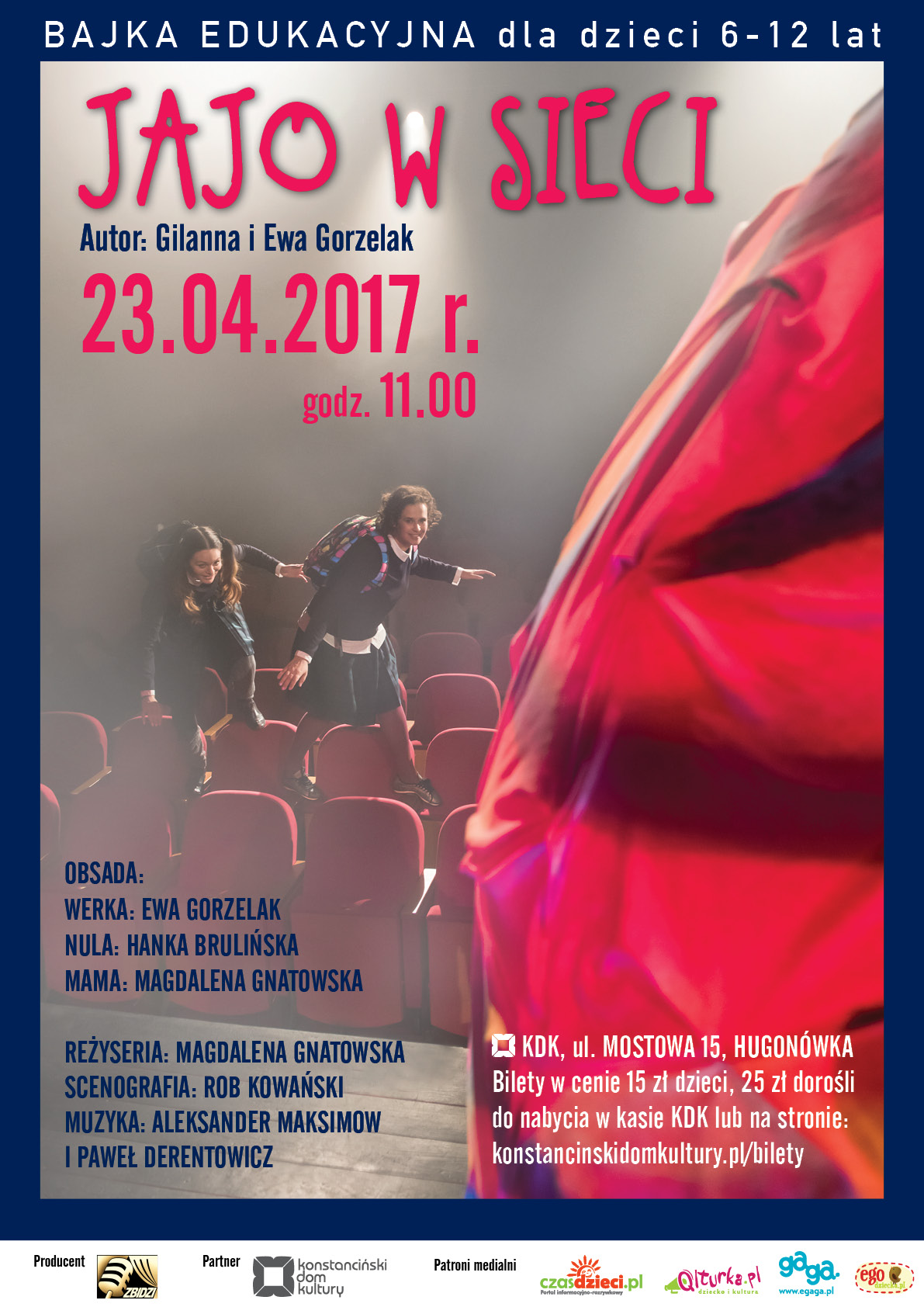 Scenariusz przedstawienia „Jajo w sieci” został napisany przez pedagoga Annę Gil i aktorkę Ewę Gorzelak. Jest to spektakl o konsekwencjach nadmiernego obcowania dzieci z cyberprzestrzenią. „Jesteśmy matkami. Z niepokojem obserwujemy jak często dzieci sięgają po wszelką elektronikę. Coraz chętniej odpływają w wirtualny świat gier, Internetu, portali społecznościowych. Robią tysiące selfie, by je natychmiast opublikować. Najważniejsze stają się dla nich aplikacje, programy, osiągnięcia w grach. „Pobyć razem” przybrało zupełnie inny wymiar.” – mówią autorki.