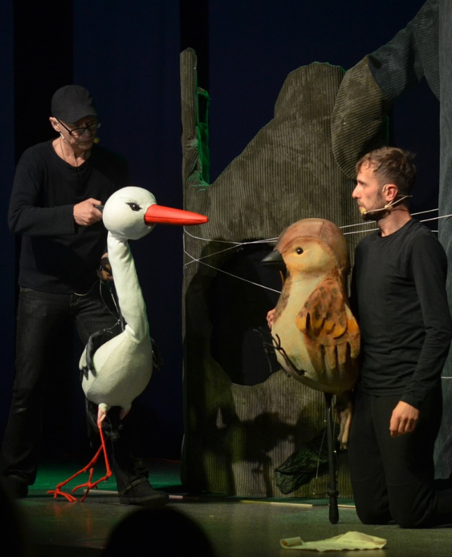 Spektakl oparty jest na motywach opowiadań o ptasich bohaterach bajek połączonych w jedną opowieść. Poszczególne epizody cechują się edukacyjną formą z wyraźnym, łatwym do zrozumienia morałem. Na scenie pojawią się duże kukiełki, muppety, pacynki.