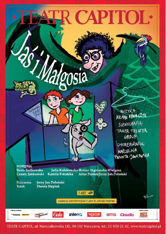 Sceniczna wersja pięknej baśni, na której wychowały się całe pokolenia. Bądźcie spokojni, niebezpieczne przygody Jasia i Małgosi dobrze się kończą. Inscenizacja została tak złagodzona, aby nie wystraszyć najmłodszych widzów. Dla dzieci starszych, jak również dla ich rodziców jest to wspaniała musicalowa zabawa w teatr, który powstaje na scenie na oczach publiczności z przypadkowo znalezionych przedmiotów: starej szafy, kilku parasoli i stylowych wieszaków. Przedstawienie budzi wyobraźnię widzów, pokazując, że teatr można tworzyć samemu, wystarczy pomysł i chęć do wspólnej zabawy!