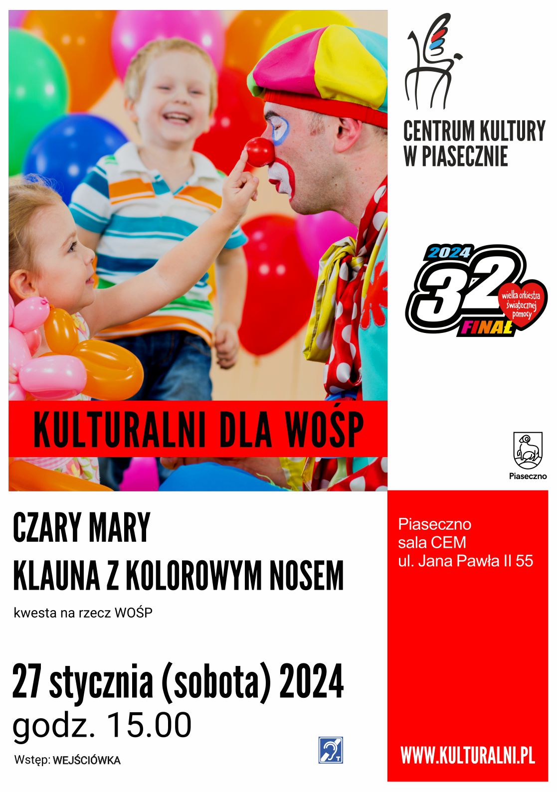 KULTURALNI DLA WOŚP CZARY MARY KLAUNA Z KOLOROWYM NOSEM
