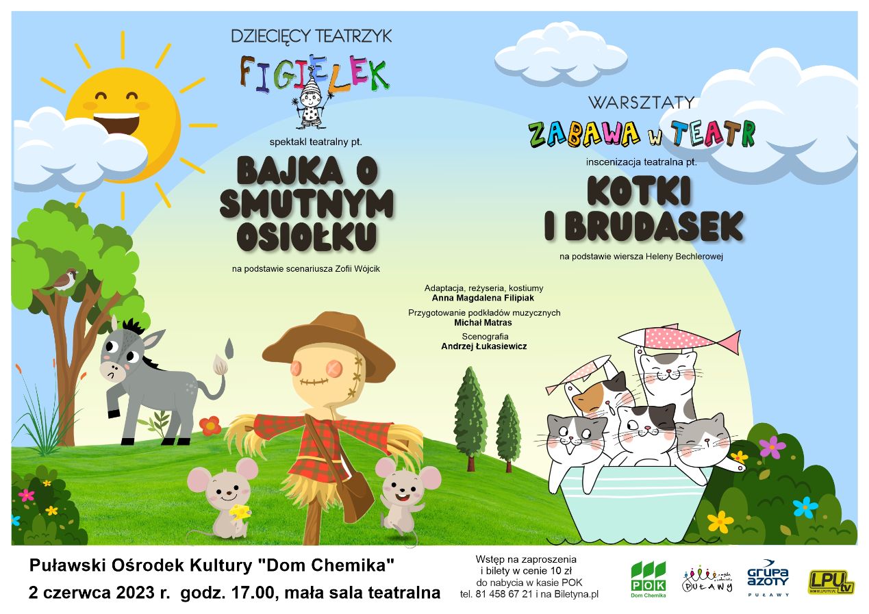 Dziecięcy Teatrzyk "Figielek” - premiera przedstawienia "Bajka o smutnym osiołku" i warsztaty "Zabawa w Teatr” - adaptacja wiersza "Brudas i kotki"