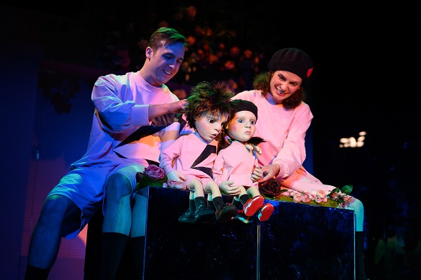 W żywoplanowej inscenizacji wykorzystane zostały lalki i projekcje video.