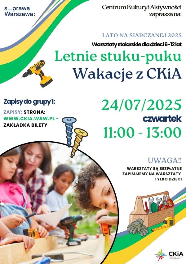 W ramach „Lata na Siarczanej 2025” zapraszamy dzieci w wieku 6–12 lat na twórcze, bezpłatne warsztaty stolarskie!