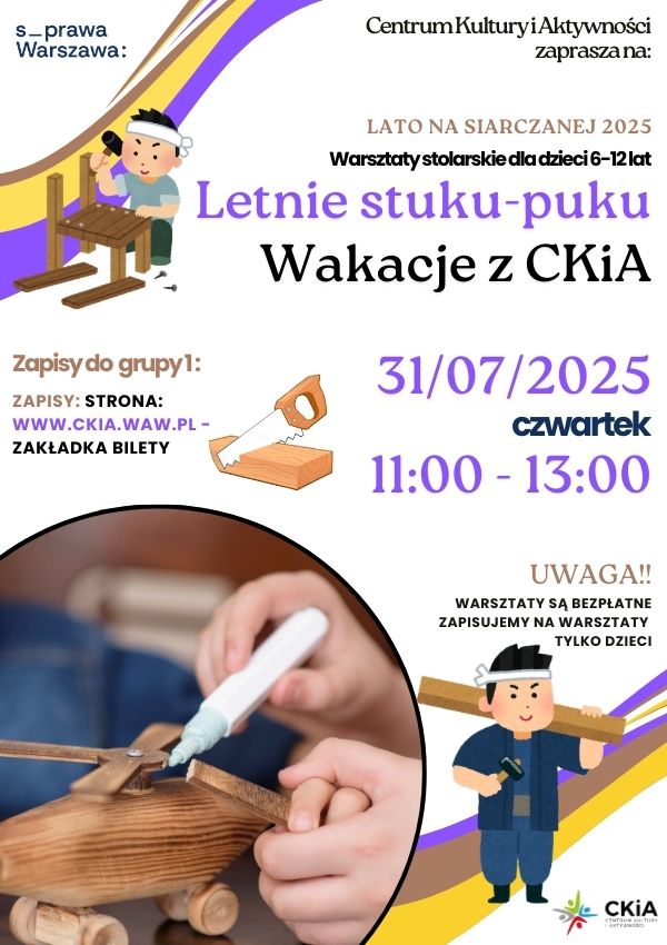 LETNIE STUKU PUKU - WARSZTATY STOLARSKIE DLA DZIECI 31.07/GRUPA I