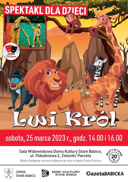 Niezwykle piękna, bardzo wciągająca i wzruszająca opowieść o sile miłości, lojalności i nadziei. W afrykańskiej dżungli na świat przychodzi małe, bezbronne lwiątko. Jednak jego wspaniale zapowiadające się życie, od początku nie układa się najlepiej. Kłusownik porywa bowiem jego rodziców i przyszły władca „lwiej krainy” pozostaje zupełnie sam. Nasz dzielny, mały bohater, postanawia ich uwolnić i wyrusza w długą, pełną przygód podróż. Na swej drodze spotka wielu życzliwych i oddanych przyjaciół, którzy nauczą go, jak radzić sobie w trudnych sytuacjach. Dużym atutem spektaklu jest piękna i bogata scenografia oraz warstwa muzyczna.