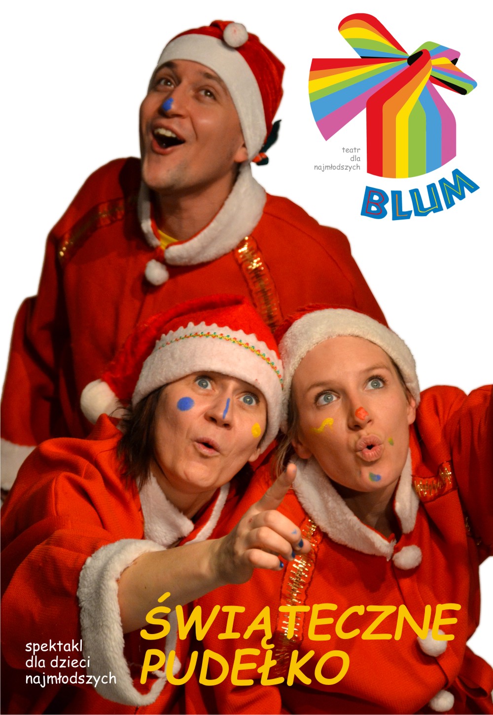 Proponujemy dzieciom świąteczną podróż do krainy marzeń i wyobraźni w towarzystwie trzech zabawnych Mikołajów. Kraina ta powstaje na oczach dzieci jako efekt teatralnej zabawy: kolorami i dźwiękami.