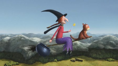 Czarownica podróżuje na miotle wraz ze swoim kotem. W czasie lotu gubi ona kolejne przedmioty, które pomagają jej odnaleźć pies, ptak i żaba. Wiedźma pozwala każdemu z nich na zajęcie miejsca na miotle, która pod ciężarem nowych pasażerów staje się jednak zbyt ciężka i łamie się w powietrzu. Na domiar złego, za czarownicą i jej podopiecznymi podąża złowrogi smok…