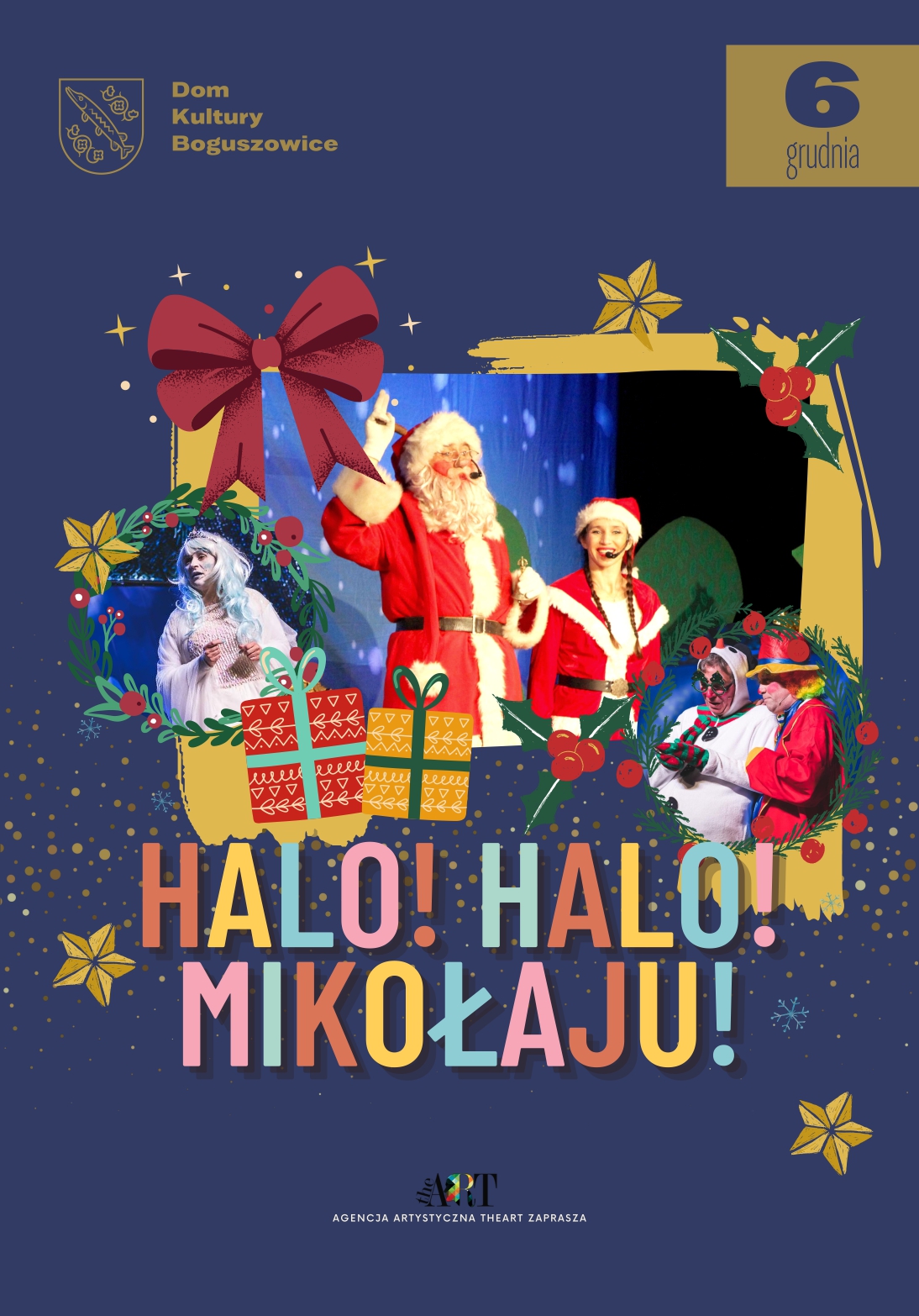 Jak co roku DK Boguszowice odwiedzi ON. Najprawdziwszy Mikołaj zaprasza dzieci z rodzicami na unikalny spektakl „Halo! Halo! Mikołaju!”. Czekamy na Was oczywiście 6 grudnia i to dwukrotnie – o 17.00 i 18.30!