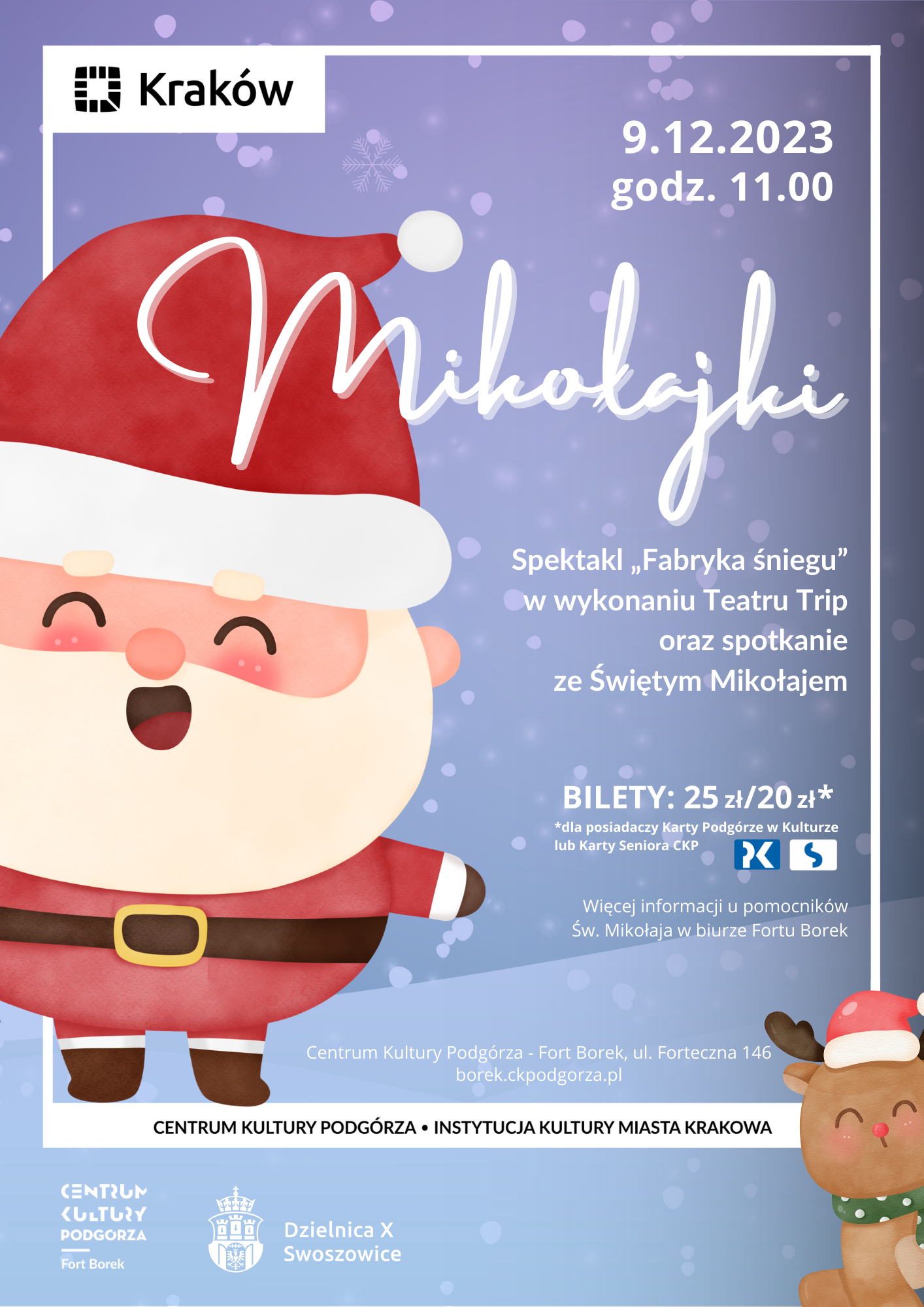 Centrum Kultury Podgórza – Fort Borek zaprasza na Mikołajki, które odbędą się 9 grudnia 2023 o godzinie 11.00.