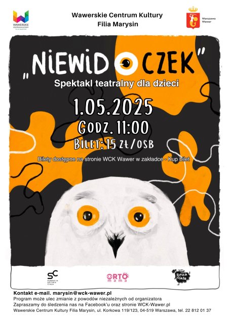 Autorski spektakl teatralny dla dzieci, wszczególności dla dzieci niedowidzących, wykorzystujący teatr ruchu, pantomimę ielementy sensoryczne iszerokie instrumentarium. Jest toopowieść pełna humoru iprzygód, inspirowana bajką terapeutyczną, którawlekki iprzystępny sposób oswaja tematykę wad wzroku orazpokazuje, jak ważne jest dbanie ookulary. Spektakl angażuje wyobraźnię widzów poprzez zabawę optyką, kontrastami iperspektywą, atakże oddziałuje nainne zmysły wzmacniając odbiór dzieciztrudnościamiwzrokowymi.