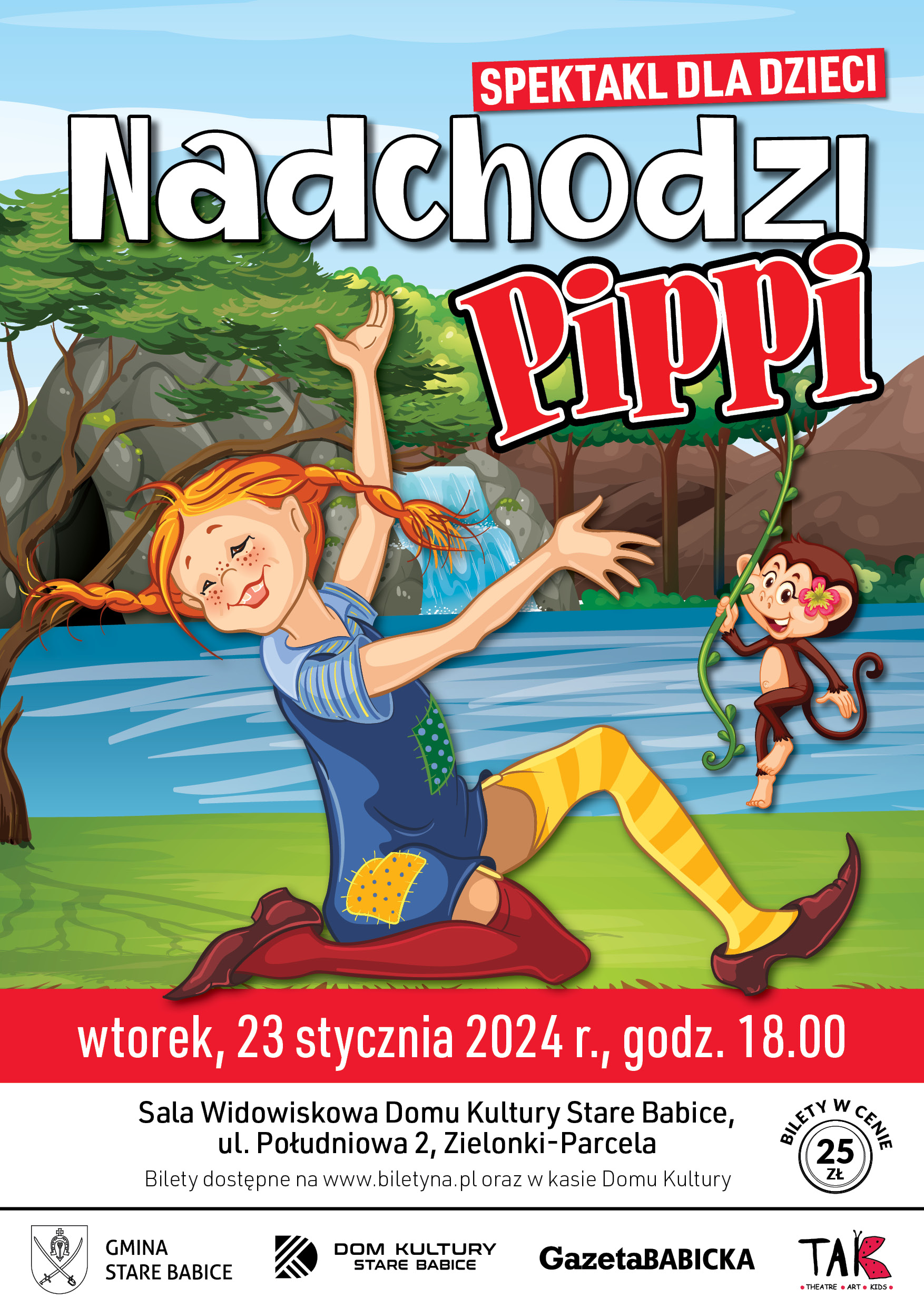 Spektakl pełen słońca i pozytywnych wibracji. Motto Pippi głosi: „Aby żyć szczęśliwie myśl człowieku pozytywnie”. W każdym wieku i do końca wszyscy jesteśmy dziećmi, choć po trosze. Nie pozwólmy sobie o tym zapomnieć. Spektakl zawiera elementy języka angielskiego oraz elementy interakcji z publicznością.