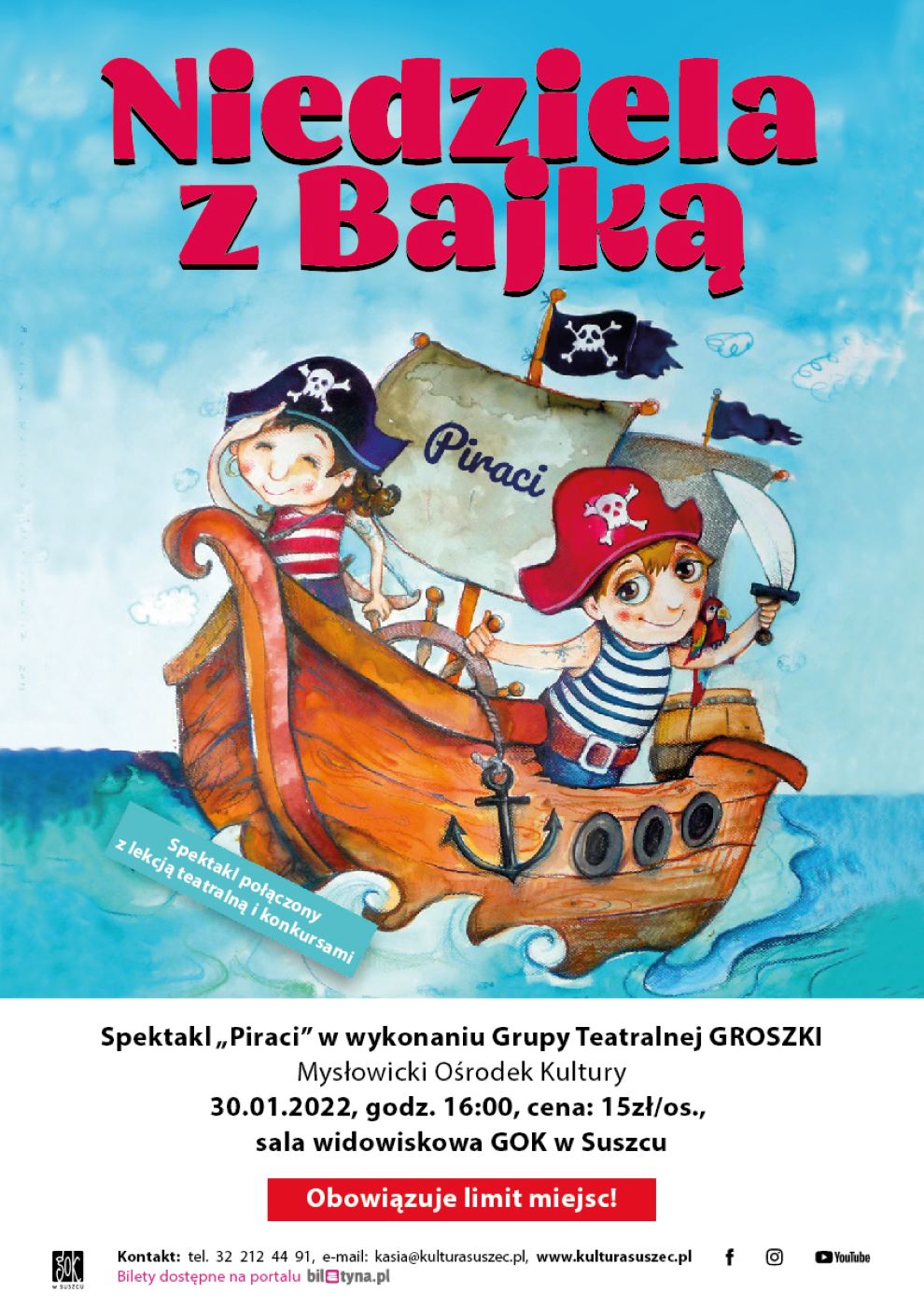 Spektakl „Piraci” w wykonaniu grupy teatralnej GROSZKI to kolejna propozycja na Niedzielę z Bajką!