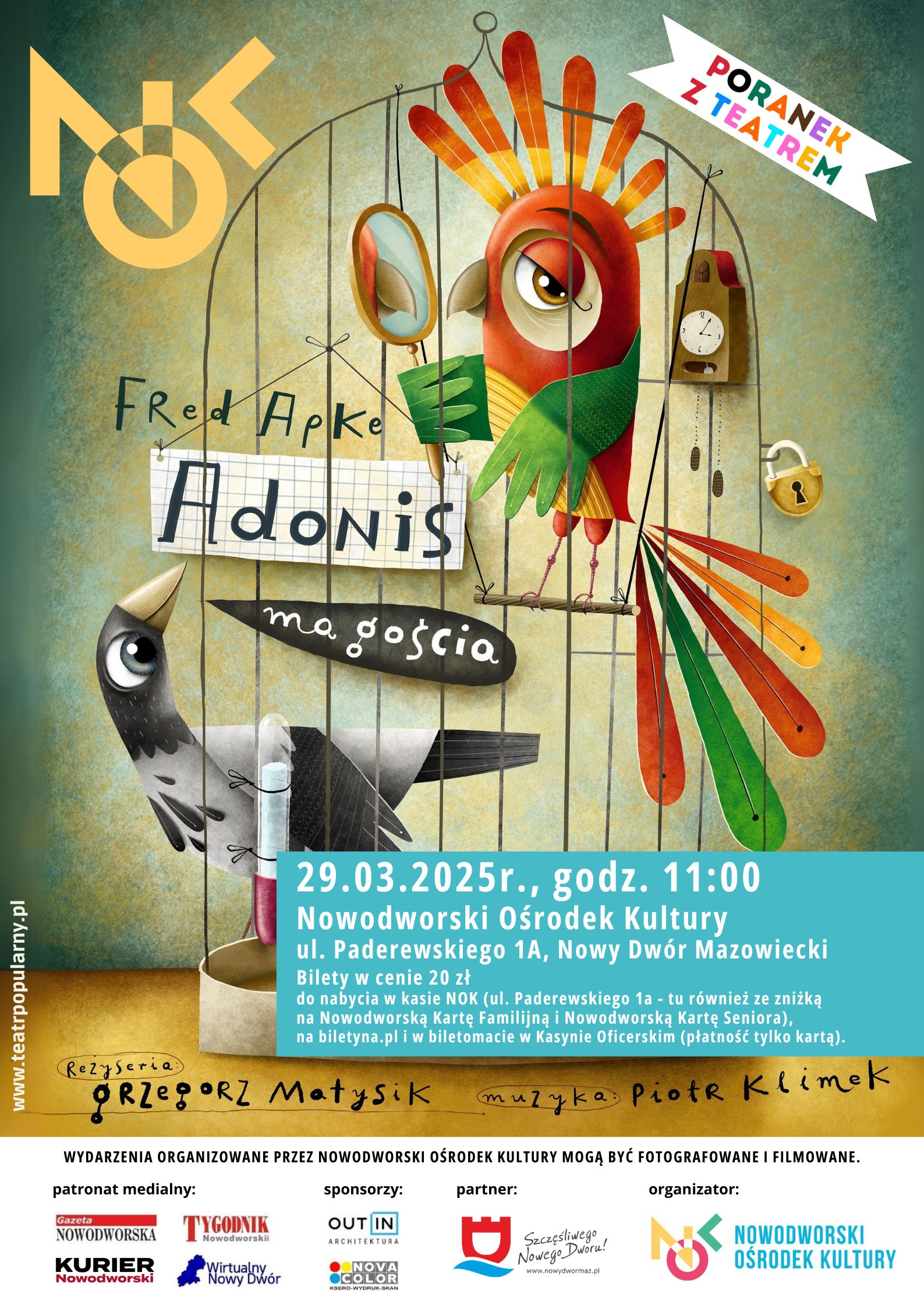 Nowodworski Ośrodek Kultury zaprasza na spektakl teatralny dla dzieci pt.: "Adonis ma gościa".