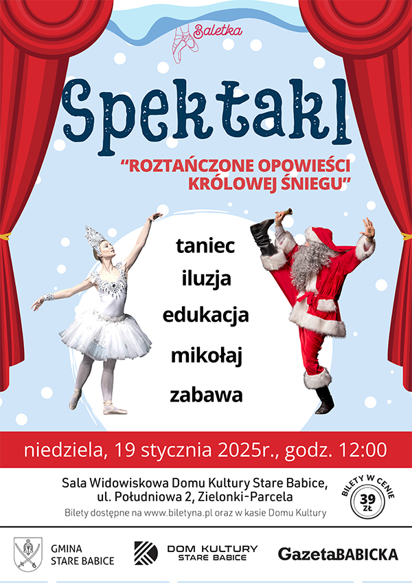 Spektakl nawiązuje do Świąt Bożego Narodzenia, jest widowiskiem interaktywnym - prowadząca go Królowa Śniegu zaprasza dzieci do wspólnych zadań i zabawy, opowiada o treści i ciekawostkach związanych z tańcem.