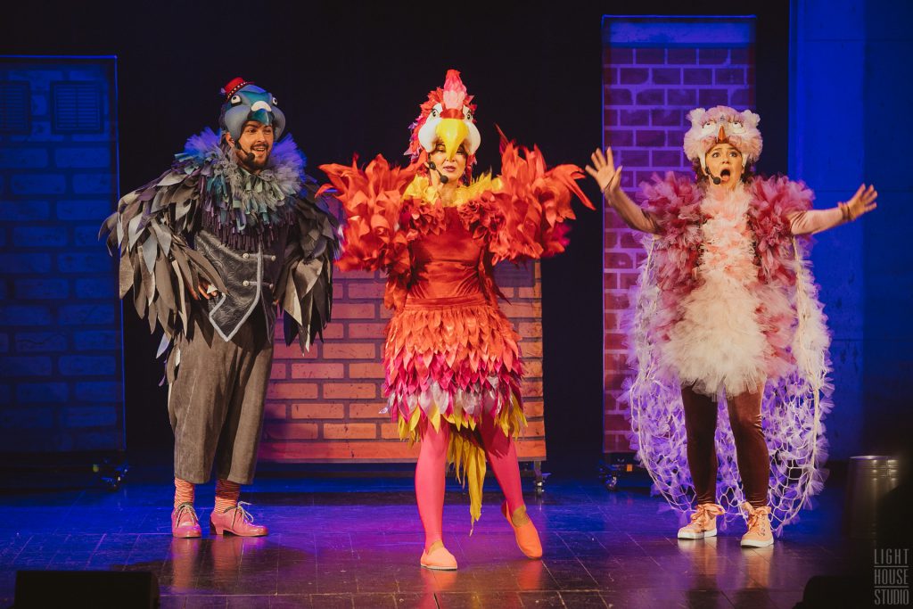Spektakl ekologiczny dla dzieci, pełen humoru i treści edukacyjnych. W akcję spektaklu wplecione są treści związane z tematem smogu i ochrony powietrza. Dzieci będą miały okazję aktywnie uczestniczyć w przedstawieniu. Wszystko zacznie się na dachu, wśród wysokich kominów… Tam spotkają się ze sobą Gołąb Gienio, Papuga Pelagia i Sowa Sonia. Te wesołe ptaki postanowią spełnić swoje marzenia i zbudować teatr! Musical dla dzieci, będący swoistą „rewią dla oka dziecka”. Na scenie pojawią się roztańczeni i rozśpiewani aktorzy w wyjątkowych, kolorowych kostiumach. Nie zabraknie również efektownych świateł i efektów specjalnych. Spektakl adresowany jest do dzieci w wieku 3-11 lat.