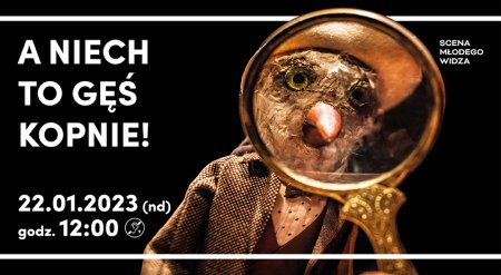 Któż z nas nie widział Gęsi przechadzającej się beztrosko po wiejskim podwórku? Długaśna szyja, śmieszne, kłapiaste stopy - Gęś jak to Gęś. Ale czy tak naprawdę Ją znamy? Czy zastanawialiście się kiedyś, co w takiej Gęsi siedzi? O czym myśli? O czym marzy? Twórcy spektaklu „A niech to Gęś kopnie!" zadali sobie to trudne pytanie i ku wielkiemu zdziwieniu odkryli smutna prawdę: Gęś - przynajmniej ta nasza - ma depresję. Jest chuda, brzydka i nie ma przyjaciół - jedyne, co ma to ów wielki smutek, przyczepiony do niej mocno, niczym jesienny liść do podeszwy mokrego buta. Czy Gęś odnajdzie swoje szczęście? Czy uśmiech na powrót zagości na jej dziobie? Przekonacie się o tym oglądając nasz obsypany nagrodami i doceniony przez publiczność w całej Polsce spektakl o poszukiwaniu sensu w życiu, o wielkiej sile przyjaźni oraz szczęściu, które może nas spotkać nawet wtedy, kiedy najmniej się go spodziewamy...