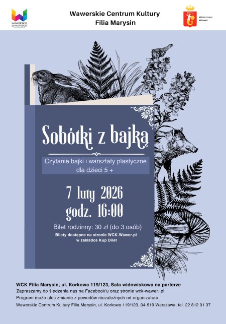 Rozpoczynamy nowy cykl spotkań dla rodzin z dziećmi w wieku przedszkolnym i wczesnoszkolnym, pn. SOBÓTKI Z BAJKĄ CZYTANĄ I MALOWANĄ. Na pierwsze spotkanie zapraszamy z autorkę książek dla dzieci Małgorzatą Śmierzyńską, mieszkanką Wawra.Po przeczytaniu bajki „O spełniających się marzeniach” odbędą się warsztaty plastyczne związane z tematem opowieści. zapraszamy