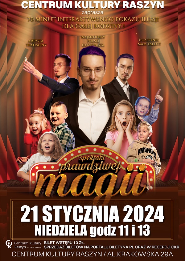 Centrum Kultury Raszyn zaprasza dzieci i opiekunów na Spektakl "PRAWDZIWEJ MAGII" w wykonaniu iluzjonisty Pawła Kwietnia!