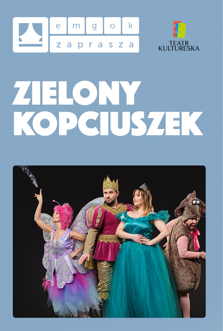 ZIELONY KOPCIUSZEK, to interaktywny spektakl muzyczny dla dzieci, który dzięki licznym piosenkom, konkurencjom i animacjom przeniesie dzieci w świat baśni o Kopciuszku, jakiej dotąd nie znały.