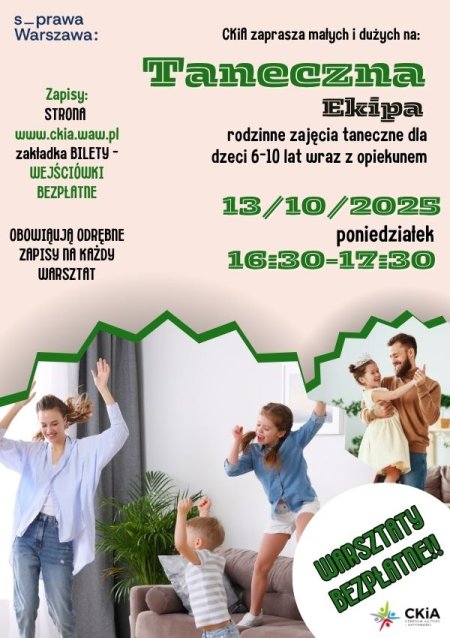 TANECZNA EKIPA 13.10 - bezpłatne, rodzinne warsztaty taneczne dla dzieci 6-10 lat.