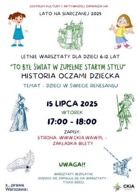 TO BYŁ ŚWIAT W ZUPEŁNIE STARYM STYLU - HISTORIA OCZAMI DZIECKA WARSZTATY DLA DZIECI. 15/07