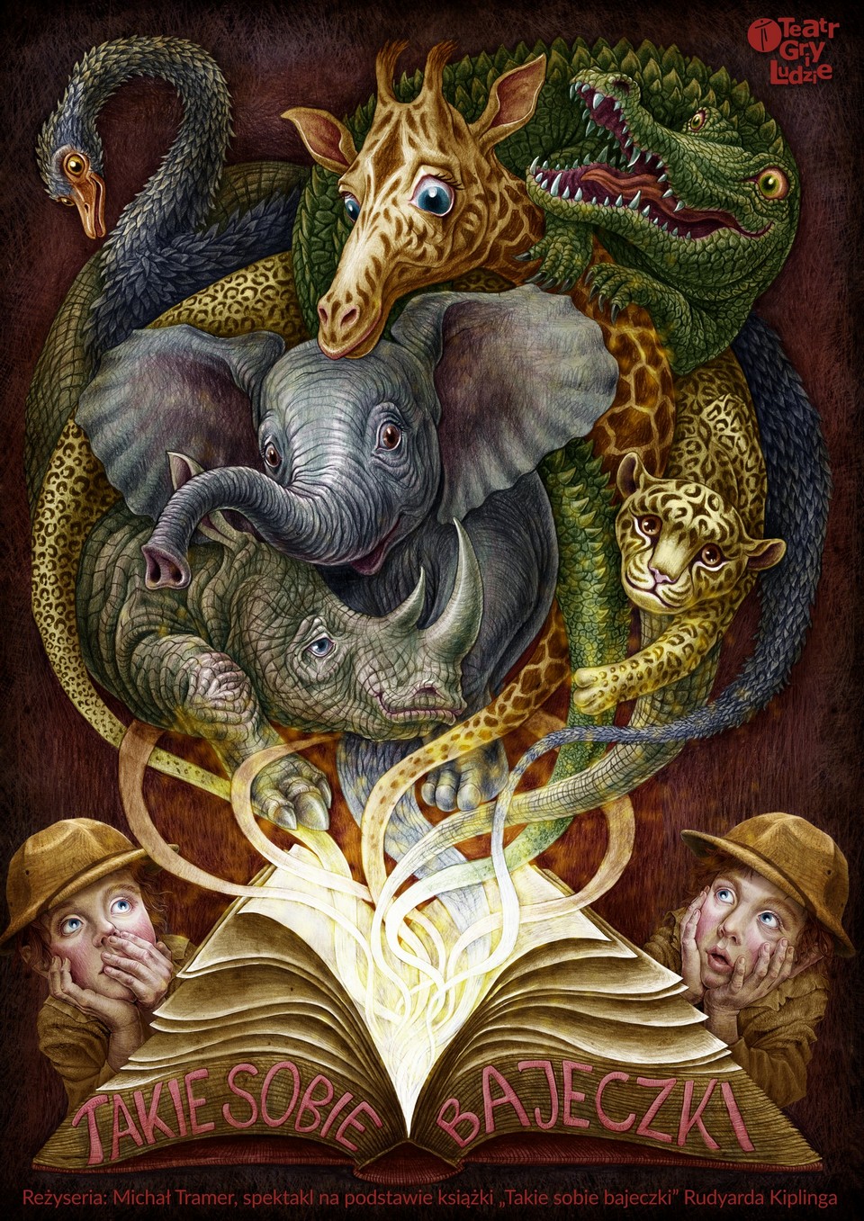 🔮 Trzech poszukiwaczy odkrywa księgę, która ożywia bajki o zwierzętach, kolorach i… psotach! 🐆🐘 Pełna humoru, magii i przygód opowieść dla całej rodziny. 📚✨ Zafunduj sobie fantastyczną rozrywkę! 🎟️