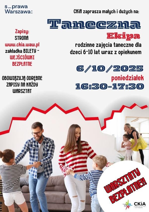 Taneczna ekipa - warsztaty taneczne dla dzieci 6-10 lat wraz z opiekunem. - więcej informacji