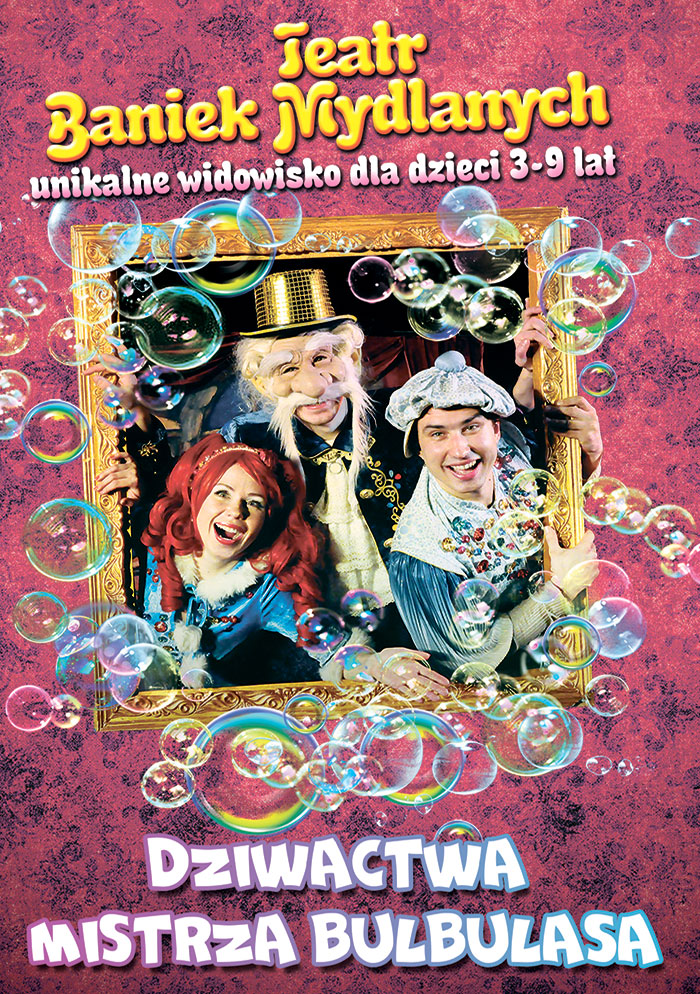 w swoim rodzaju Bąbelek zabiorą Was w podróż do czarodziejskiego świata, pełnego niezwykłych kolorów, świateł i dźwięków, okraszonych zachwycającymi pokazami baniek mydlanych. Będzie nietypowa scenografia: Bulmobil czy zaczarowane Bańkolustro, radosne kostiumy, przepiękna choreografia