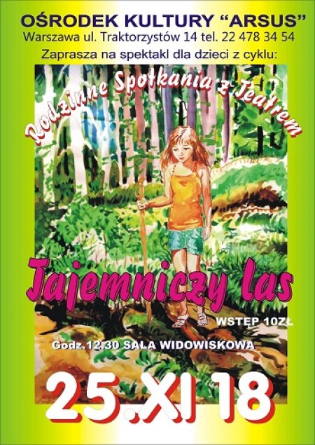 "Tajemniczy las" to przedstawienie o sile przyjaźni, która pokonuje wszystkie przeszkody. Jej bohaterami są elfy i leśne stworzenia, które dla ratowania przyjaciół wybierają się w podróż wgłąb lasu. Spotykają po drodze postaci z różnych bajek, które dają im wskazówki lub utrudniają poszukiwania. Jak to o w bajkach bywa, wszystko dobrze się kończy. Przedstawienie ma charakter interaktywny, a młodzi widzowie stają się jego bohaterami.