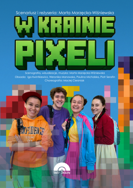 W KRAINIE PIXELI to nowoczesny spektakl dla dzieci, który łączy dynamiczną akcję z głębokim przekazem społecznym. Historia czwórki uczniów, którzy w magiczny sposób trafiają do świata gry komputerowej, staje się pretekstem do rozmowy o tym, co najważniejsze – relacjach międzyludzkich. Dzieci, próbując „wygrać” grę, muszą wykonać kolejne zadania, które tylko z pozoru przypominają wyzwania z wirtualnych światów. Prawdziwym wyzwaniem okazuje się współpraca, wzajemne zaufanie i akceptacja – zarówno innych, jak i samego siebie. Spektakl porusza tematy samotności w grupie, trudności komunikacyjnych, wykluczenia, nieśmiałości, potrzeby bycia zauważonym – z perspektywy bliskiej dzieciom. Atutem spektaklu jest nowoczesna forma: interaktywność, autorskie piosenki w stylu hip-hop i elektroniczna scenografia. To język, który dzieci rozumieją i akceptują, dzięki czemu jeszcze chętniej wchodzą w opowieść.