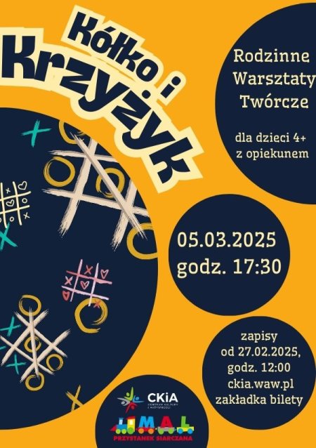 Kółko i krzyżyk? A może pszczółki i biedronki? Lub słońce i księżyc? Wszystko zależy od Ciebie! Podczas najbliższych Rodzinnych Warsztatów Twórczych wykonamy kultową grę kółko i krzyżyk w nowej odsłonie – według własnych, indywidualnych pomysłów! Serdecznie zapraszamy dzieci w wieku 4+ z opiekunem. Zapisy online od 27.02.2025 od godz. 12:00 poprzez naszą stronę: ckia.waw.pl zakładka bilety.