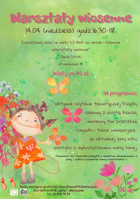 Zapraszamy dzieci w wieku 2,5-8lat na wesołe i kolorowe „Warsztaty wiosenne” w Domu Sztuki.