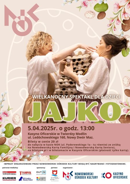 Nowodworski Ośrodek Kultury zaprasza na wielkanocny spektakl dla dzieci pt.: "JAJKO"