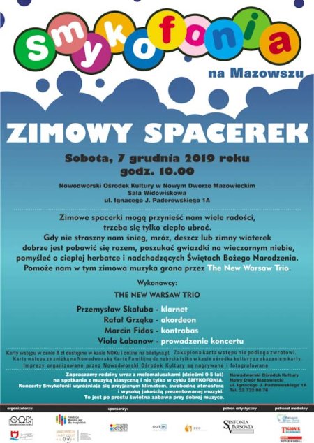 Zapraszamy rodziny wraz z melomaluszkami (dziećmi 0-5 lat) na spotkania z muzyką klasyczną i nie tylko w cyklu SMYKOFONIA.