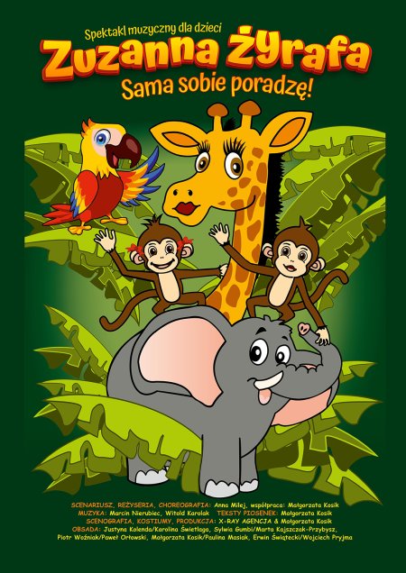Zapraszamy do teatru naspektakl muzyczny dla dzieci Zuzanna Żyrafaz piosenkami znanej małpki Dj Miki.Piosenka tytułowa ma ponad 50 mln odsłon na youtubie.