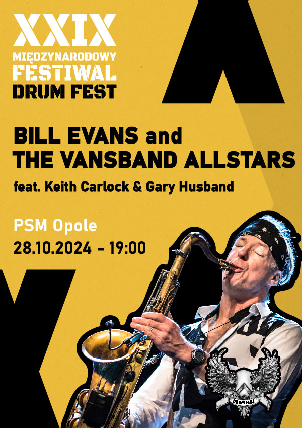 Tegoroczną edycję Festiwalu DRUM FEST zakończy koncert zespołu Bill Evans VansBand Allstars (USA / GB) w składzie: